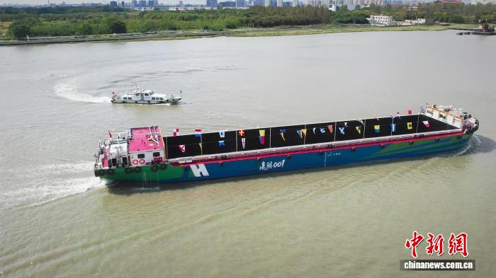 中新网上海10月17日电 (谢梦媛 郑丕先)在上海闵行海事局的护航下,首艘甲醇电动配送船“元春001”号17日驶过黄浦江闸湾,标志着甲醇电动技术船正式进入商业运营阶段。