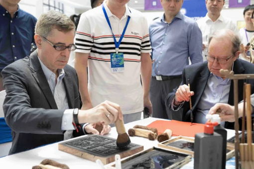 10月14日,在2025安徽科技赋能文旅发展元素对接会数字智能文旅生态展示活动上,安徽省内外20余家文旅科技企业重点展示了“科技赋能创新技术、场景应用和代表性产品”。图为参展企业(右)工作人员向嘉宾介绍公司AR智能眼镜产品信息。中新网图片 服务记者 张强